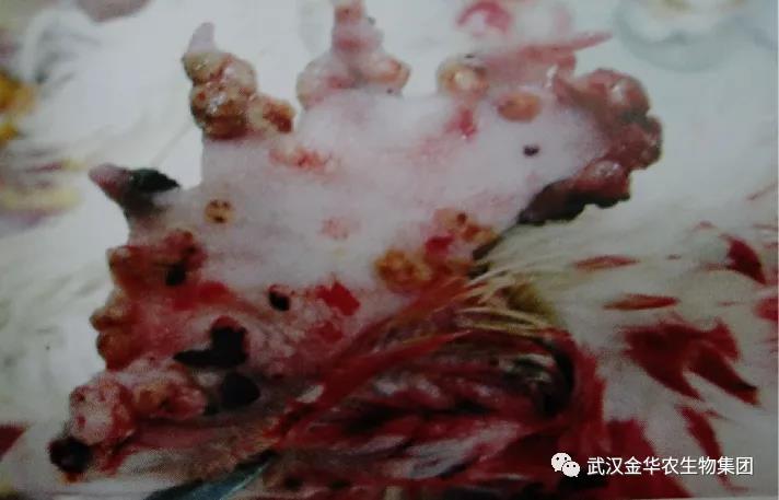 在潮濕型雞痘中可發(fā)現(xiàn)位于口腔、喉頭、及氣管開口處之粘膜有潰瘡現(xiàn)象。