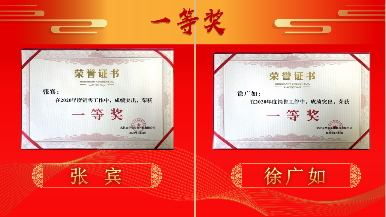 隨后,公司2020年度表彰頒獎儀式正式拉開序幕。2020年的市場大環(huán)境并不理想,但是眾多武漢金華農(nóng)人卻在形式嚴(yán)峻的工作環(huán)境中砥礪前行,取得了驕人的成績。富勝董事長表示,銷售團(tuán)隊敬業(yè)和拼搏的精神,可敬!可佩!向大家過去一年逆勢飄紅的業(yè)績表示祝賀!
