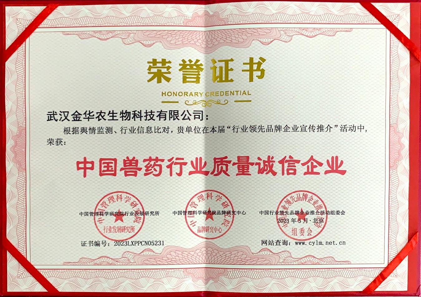 中國獸藥行業(yè)“質(zhì)量誠信企業(yè)”
