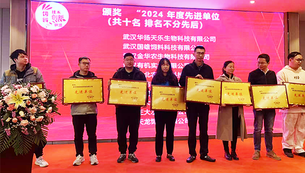 3 月 28 日,武漢市飼料協(xié)會年會暨第四屆第二次會員大會在武漢市歐亞國際會議酒店隆重舉行。武漢金華農(nóng)生物科技有限公司憑借在科技創(chuàng)新、產(chǎn)業(yè)服務(wù)及行業(yè)引領(lǐng)等方面的突出表現(xiàn),被授予2024 年度畜牧行業(yè)“先進(jìn)單位” 榮譽(yù)稱號。湖北省農(nóng)業(yè)農(nóng)村廳畜牧獸醫(yī)處李處長、武漢市農(nóng)業(yè)農(nóng)村局張局長、武漢市農(nóng)業(yè)農(nóng)村局余處長出席活動并為獲獎單位頒獎。武漢金華農(nóng)生物集團(tuán)富勝董事長出席活動并致辭。