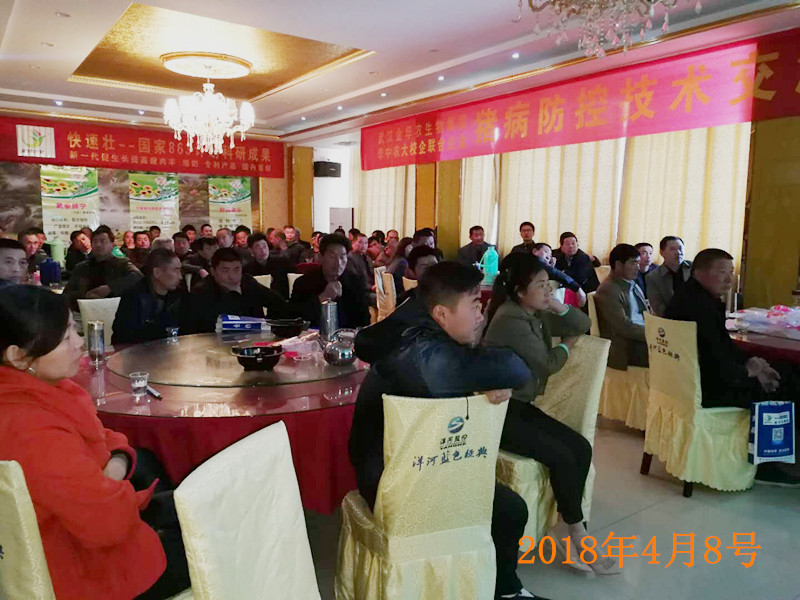 2018年4月8日,武漢金華農生物安徽霍邱縣豬病防控暨技術交流會勝利召開!公司副總經理徐巍博士應邀出席并參加。本次會議由安徽區(qū)域戰(zhàn)略合作伙伴黃總和安徽大區(qū)吳先鋒經理共同策劃與組織,由華中農業(yè)大學動物醫(yī)學院帥起義教授主講,參會豬場老板達到80多人,會場氣氛熱烈而友好,會議效果良好,武漢金華農產品質量和臨床療效受到養(yǎng)殖戶的高度認可與贊美。雖然該地區(qū)是新市場,第一次組織會議,但現場訂貨高達20多萬元,后期跟蹤服務高達40多萬元,遠超預期。祝賀安徽大區(qū)首場豬病會議旗開得勝!好獸藥,武漢金華農造!!