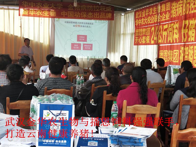 2018年6月25日,武漢金華農生物制藥與云南播恩飼料集團,強強聯(lián)手,戰(zhàn)略互信,友好合作,互惠雙贏,服務廣大省內畜牧養(yǎng)豬戶,打造云南健康養(yǎng)豬生態(tài)產業(yè)鏈第一品牌!武漢金華農生物集團聯(lián)合華中農業(yè)大學豬病權威專家教授,結合云南養(yǎng)豬地域性的實際情況,于本月25日、28日、30日,連續(xù)舉辦3場送“科技下鄉(xiāng)豬病研討會”,打造云南養(yǎng)豬特色服務產業(yè)生態(tài)鏈條,為廣大養(yǎng)豬戶排憂解難,為廣大養(yǎng)豬戶保駕護航!