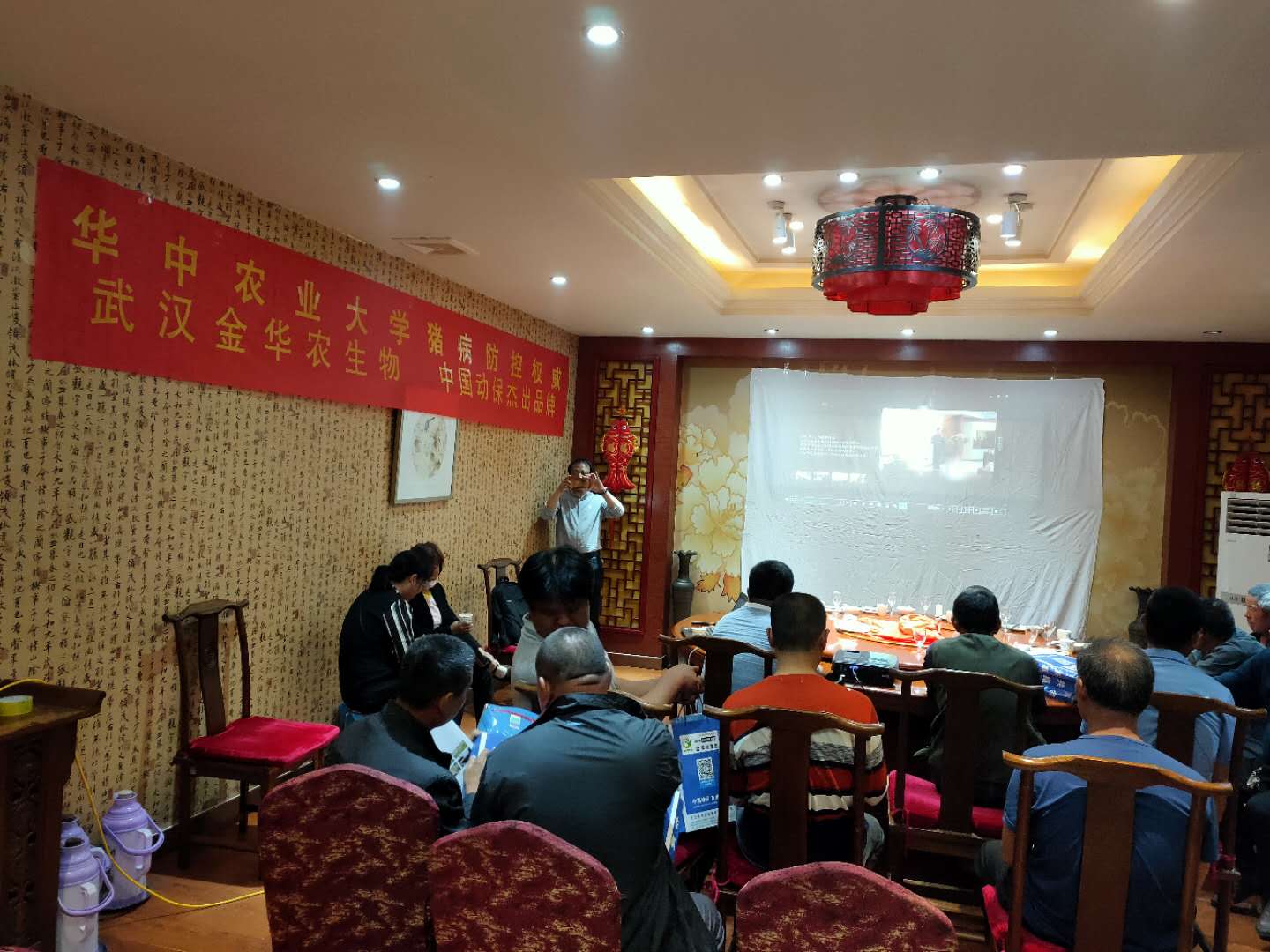 2019年5月18日,武漢金華農(nóng)生物集團應(yīng)山東省濟寧、臨沂兩地畜牧主管部門的邀請,在山東地區(qū)舉辦2場“夏季豬場多發(fā)病的防控與治療”專題豬病研討學(xué)習(xí)會議,此次會議非常成功,參加會議養(yǎng)殖場有50多家,養(yǎng)豬戶熱情十分高漲,學(xué)習(xí)積極踴躍,夏季豬場“多發(fā)病”知識普及到位,豬病防控與治療宣傳深入,會議取得很好的效果。