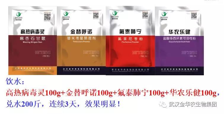 1、【白天控水】,集中4小時(shí)內(nèi)喝完,飲水:高熱病毒靈100克+金替呼諾100克+氟泰肺寧100克+華農(nóng)樂健100克,兌水200斤,連續(xù)3天,效果明顯!