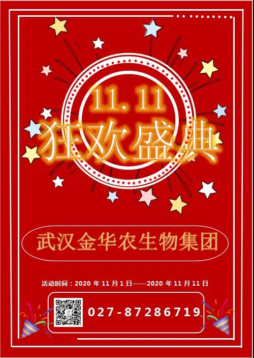 ? ? ?為慶祝公司新工廠順利推進“輝煌建設”中,為真誠感恩在這段不平凡歲月中奮戰(zhàn)在動保銷售一線的武漢金華農(nóng)同仁,為迎接“雙十一”的到來,同時助力各區(qū)市場沖刺完成2020全年銷量任務。弘揚“公司發(fā)展我成長,我為公司添光彩”,“人人爭當冠軍,人人爭當標兵”的企業(yè)文化精神,并真誠感恩全國各地新老客戶的支持與厚愛。公司研究決定舉辦“雙十一”特大優(yōu)惠促銷活動!年僅一次,超大力度!活動內容如下:? ? ?