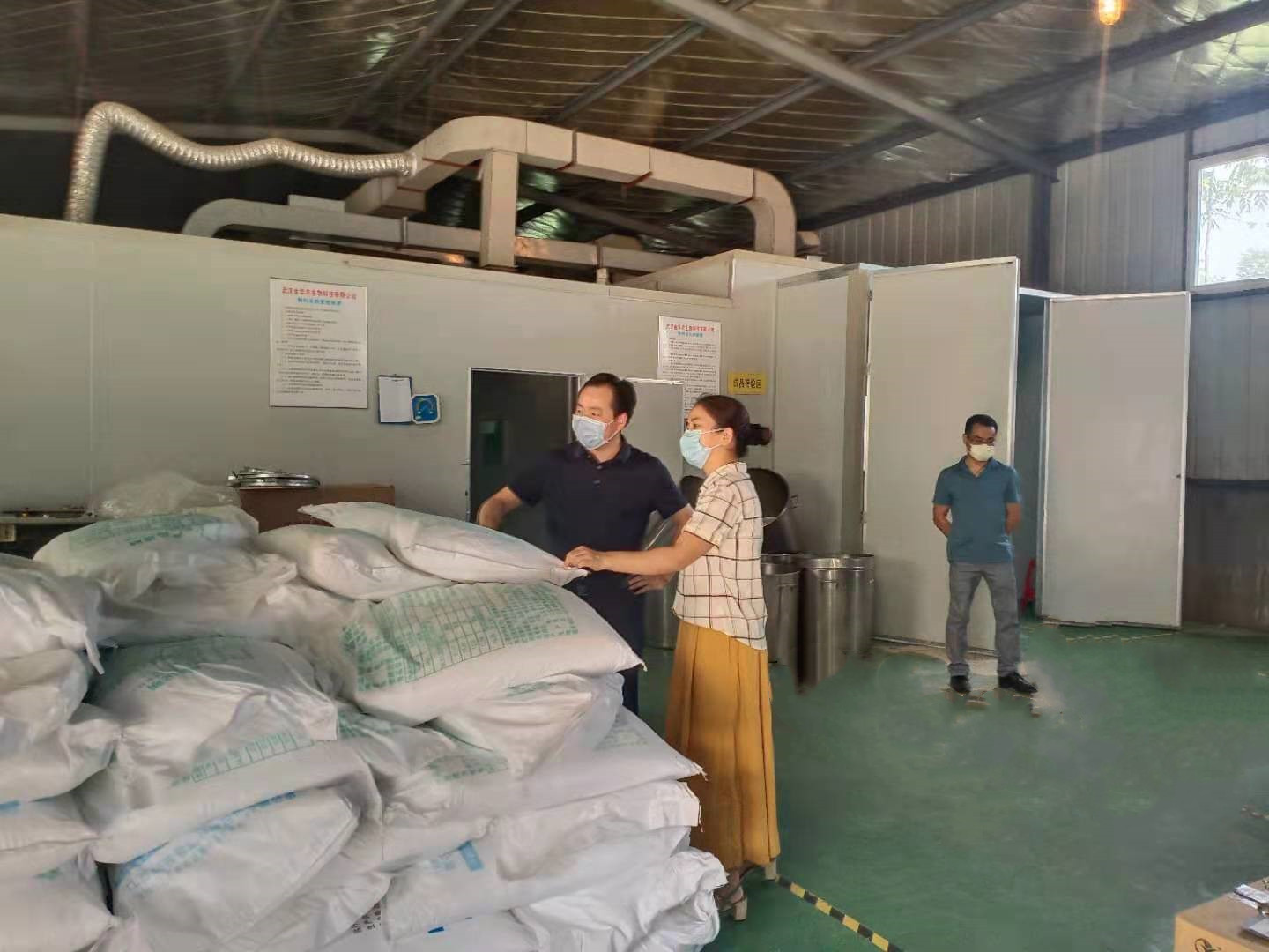 2021年8月19日,武漢市農(nóng)業(yè)農(nóng)村局裴小英處長、陳周科長、朱勁松科長等一行,蒞臨我公司華中農(nóng)業(yè)大學(xué)科技園生產(chǎn)基地視察指導(dǎo)工作,對我司獸藥動保、飼料添加劑(含微生物制劑)的生產(chǎn)線進行督導(dǎo)巡檢,公司董事長富勝、質(zhì)量總監(jiān)劉玉學(xué)、財務(wù)總監(jiān)盧韋、生產(chǎn)主任付謙以及公司相關(guān)部門負責(zé)人出席陪同,并迎接湖北省畜牧獸藥飼料行業(yè)“雙隨機抽檢”工作。