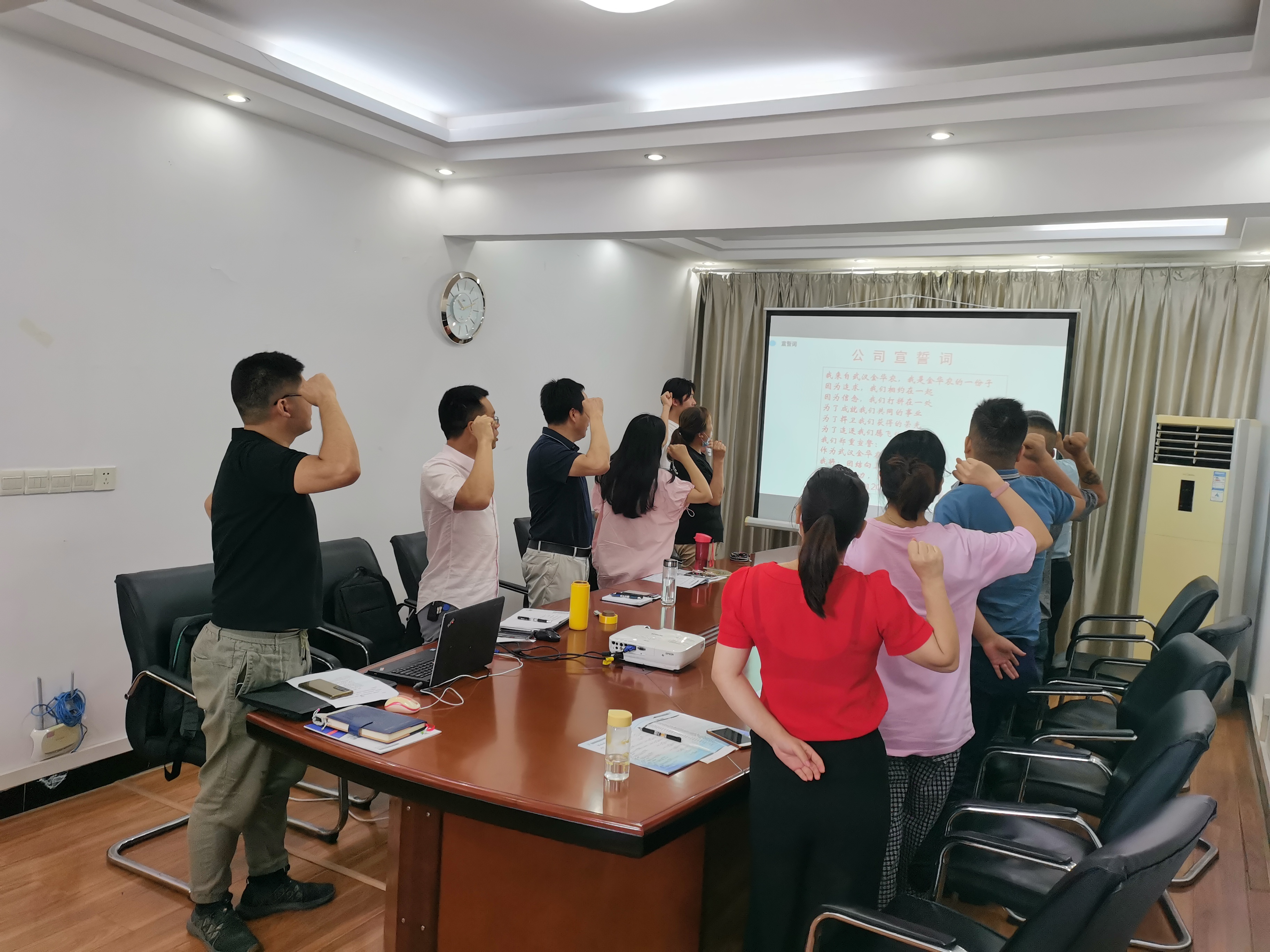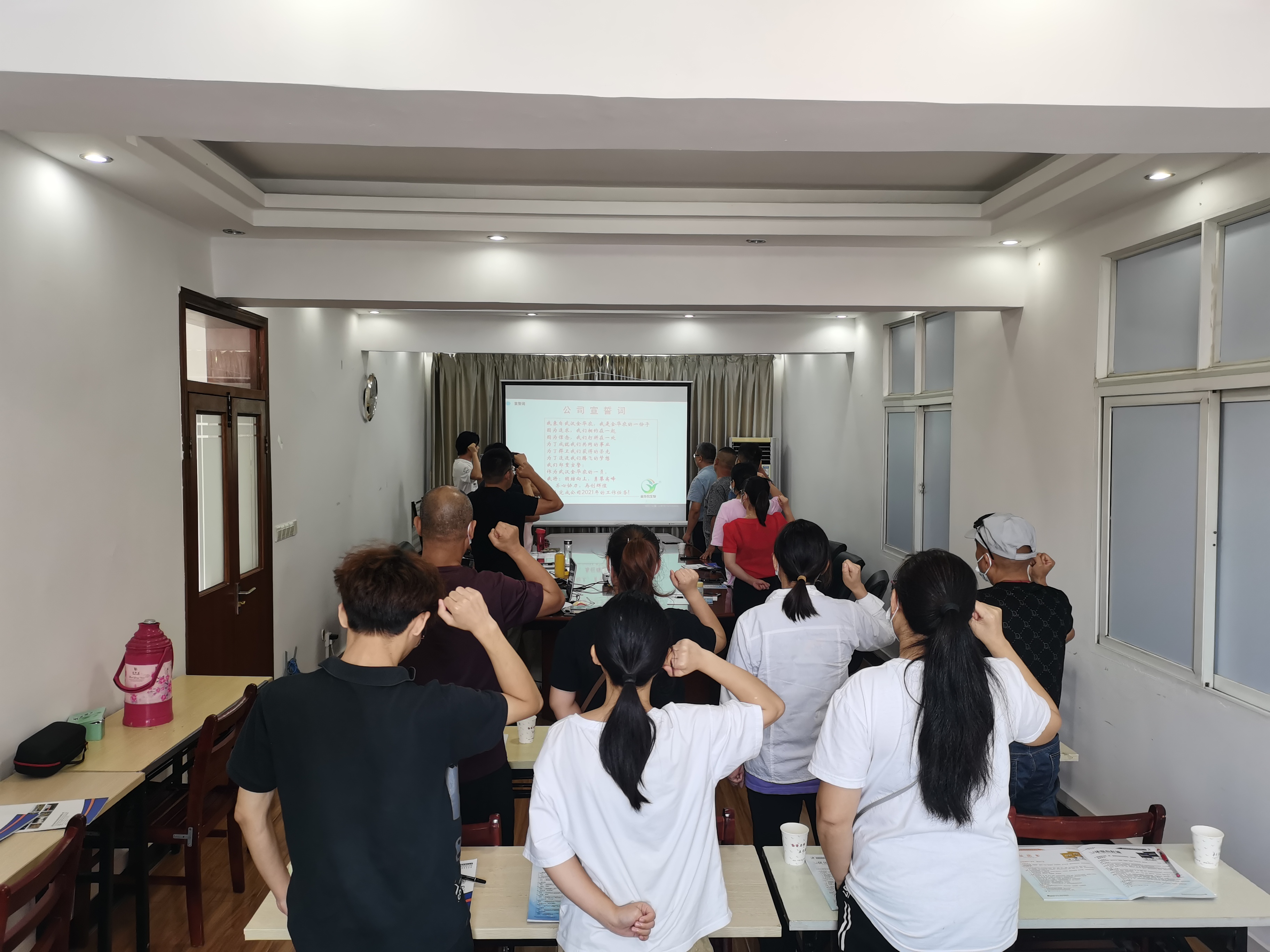 最后,全體員工右手舉拳,進行了莊嚴宣誓。發(fā)自肺腑地喊出“我來自武漢金華農,我是金華農的一份子。因為追求,我們相約在一起。因為信念,我們打拼在一處。為了成就我們共同的事業(yè),為了捍衛(wèi)我們獲得的榮光,為了追逐我們騰飛的夢想,我們鄭重宣誓作為武漢金華農的一員,我將團結向上,勇攀高峰,齊心協(xié)力,再創(chuàng)輝煌出色完成公司2021年的銷售任務!”的誓言。