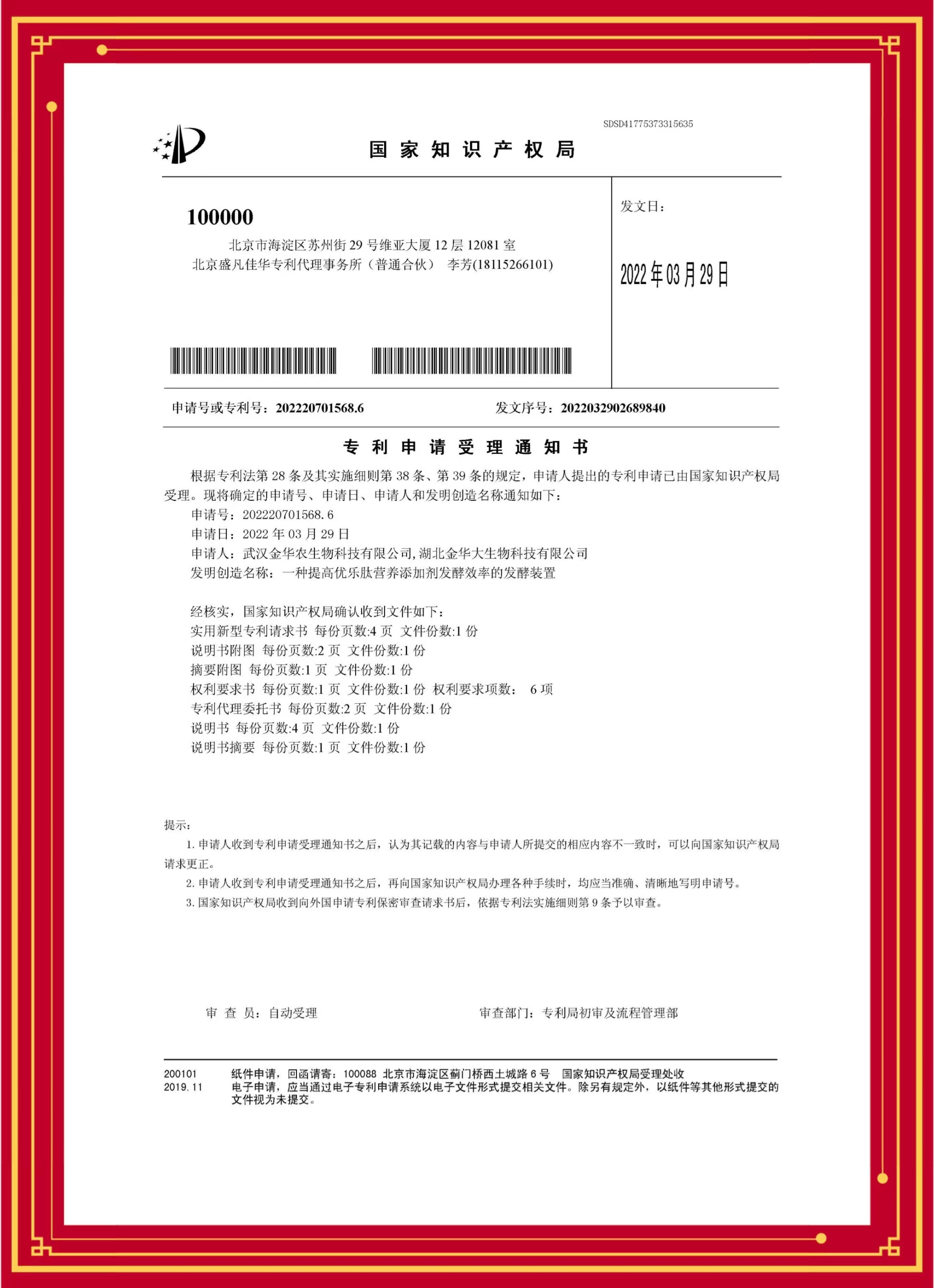 科技發(fā)明專利(優(yōu)樂(lè)肽):專利號(hào)—20220701568.6