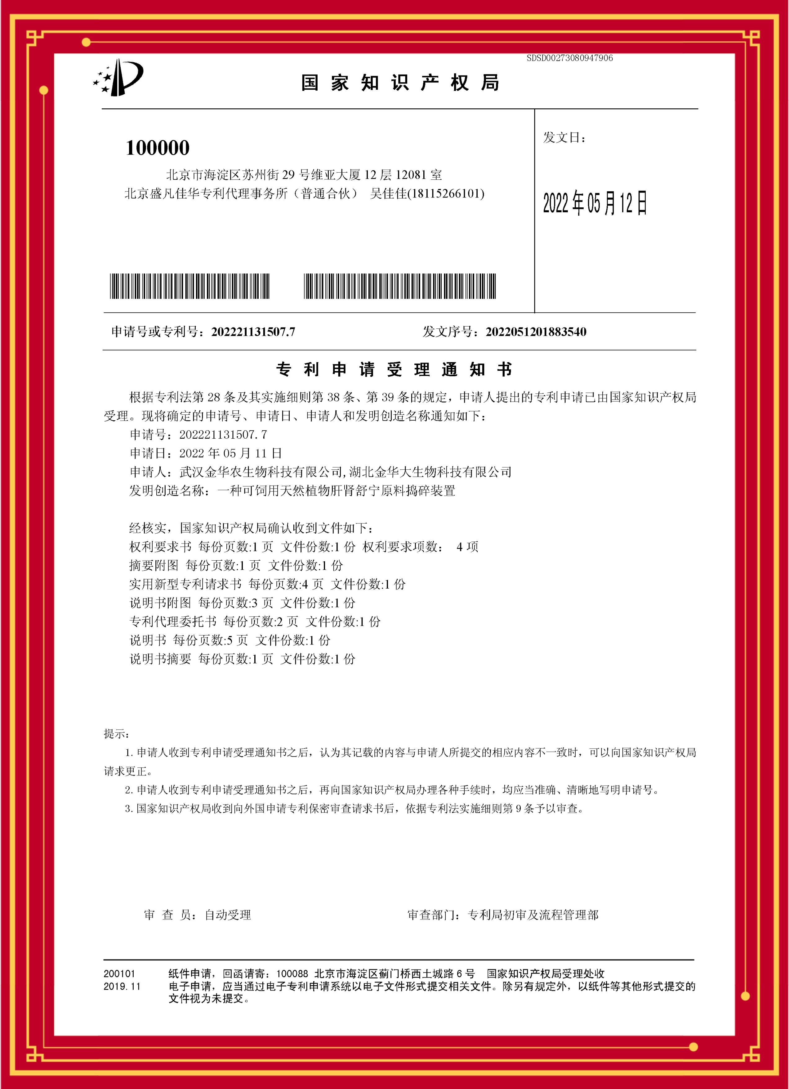 科技發(fā)明專利(肝腎舒寧):專利號—202221131507.7