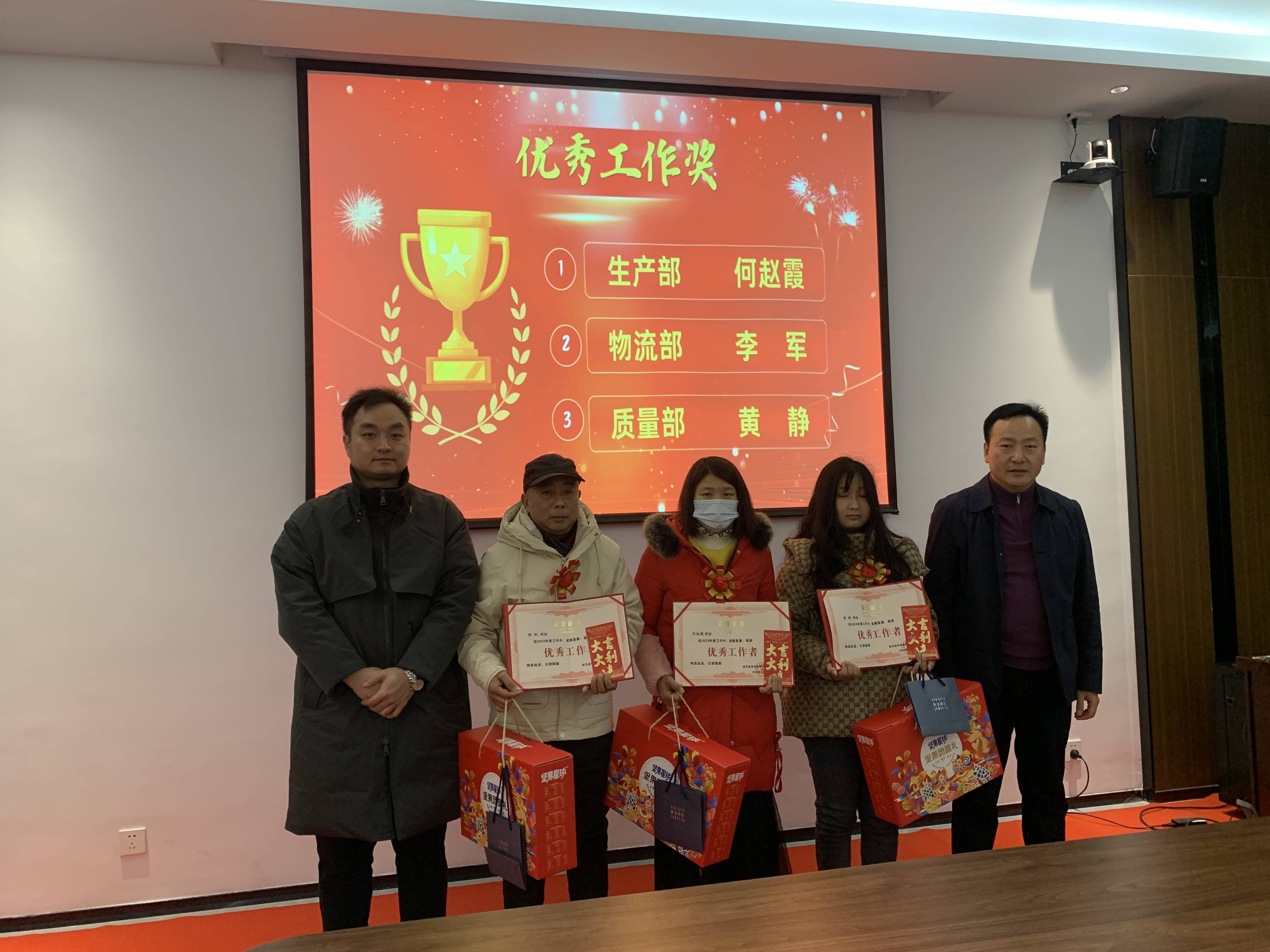 ? ? ? ?辭舊納新,共赴新程。2月5日,武漢金華農(nóng)生物公司2023年行政生產(chǎn)后勤年終工作總結(jié)暨優(yōu)秀員工表彰會(huì)議勝利召開,來自一線崗位的優(yōu)秀員工代表歡聚一堂,喝彩充滿挑戰(zhàn)與收獲的2023年,迎接充滿生機(jī)與發(fā)展的2024年。