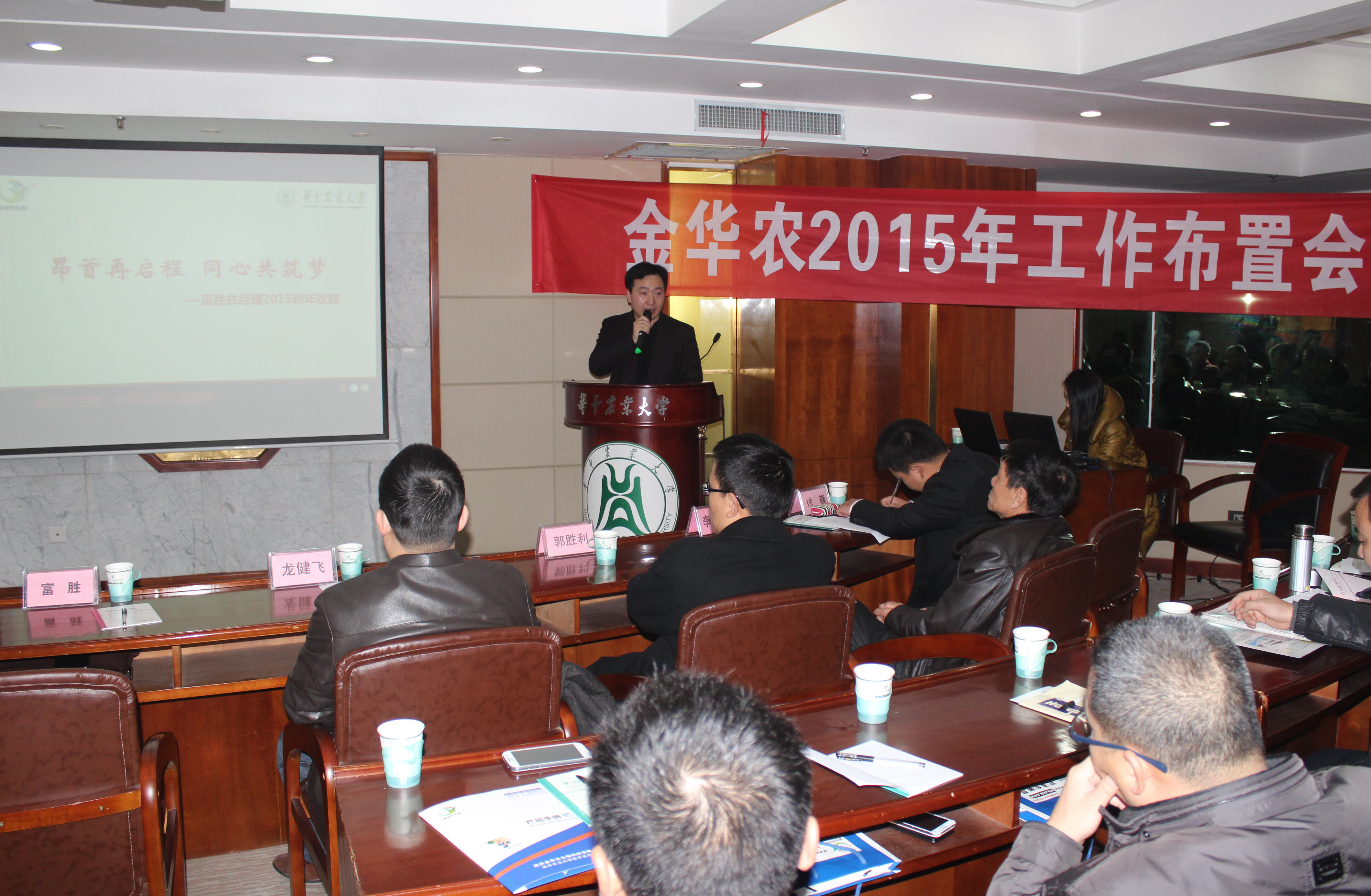 首先,徐總就2014年公司所取得的成績(jī)與進(jìn)步、公司新項(xiàng)目的推進(jìn)速度、公司深化改革后內(nèi)部至外圍的發(fā)展變化、公司年度財(cái)務(wù)結(jié)算與銷售業(yè)績(jī),向大家作了詳細(xì)報(bào)告,肯定了全體金華農(nóng)人的努力付出的結(jié)果,超額完成了年初設(shè)定的銷售目標(biāo)。同時(shí)向大家講述了公司2015年將有將全面深化改革,快速推進(jìn)新項(xiàng)目的建設(shè)與運(yùn)營,創(chuàng)新型的科技產(chǎn)品也將全面上市銷售。