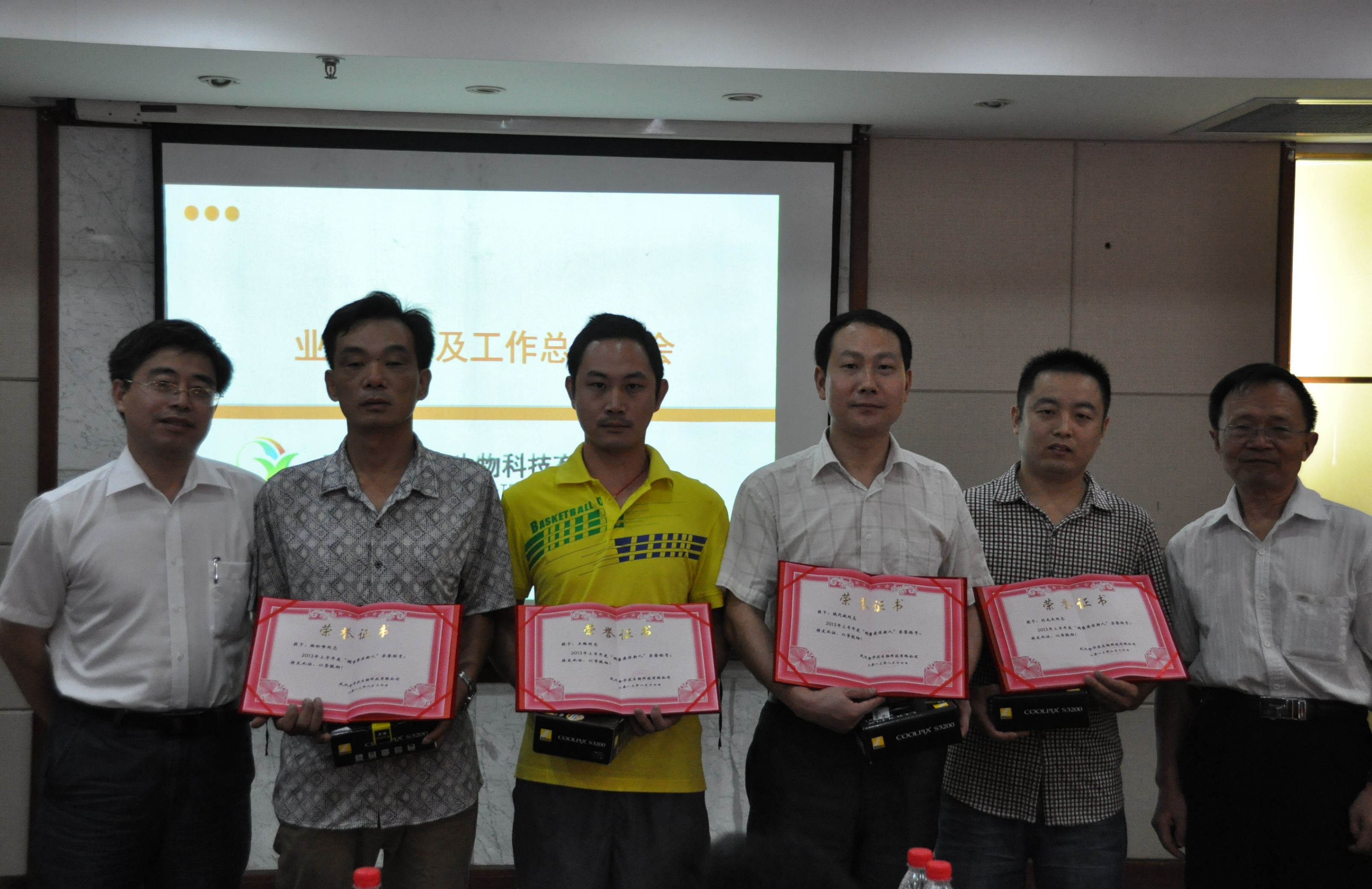 公司領(lǐng)導(dǎo)富勝總經(jīng)理、肖后軍所長(zhǎng)、李仁剛處長(zhǎng)、姚寶安教授、齊德生教授,一起為銷售業(yè)績(jī)突出、表現(xiàn)優(yōu)秀的市場(chǎng)精英們頒發(fā)獎(jiǎng)品和榮譽(yù)證書。
